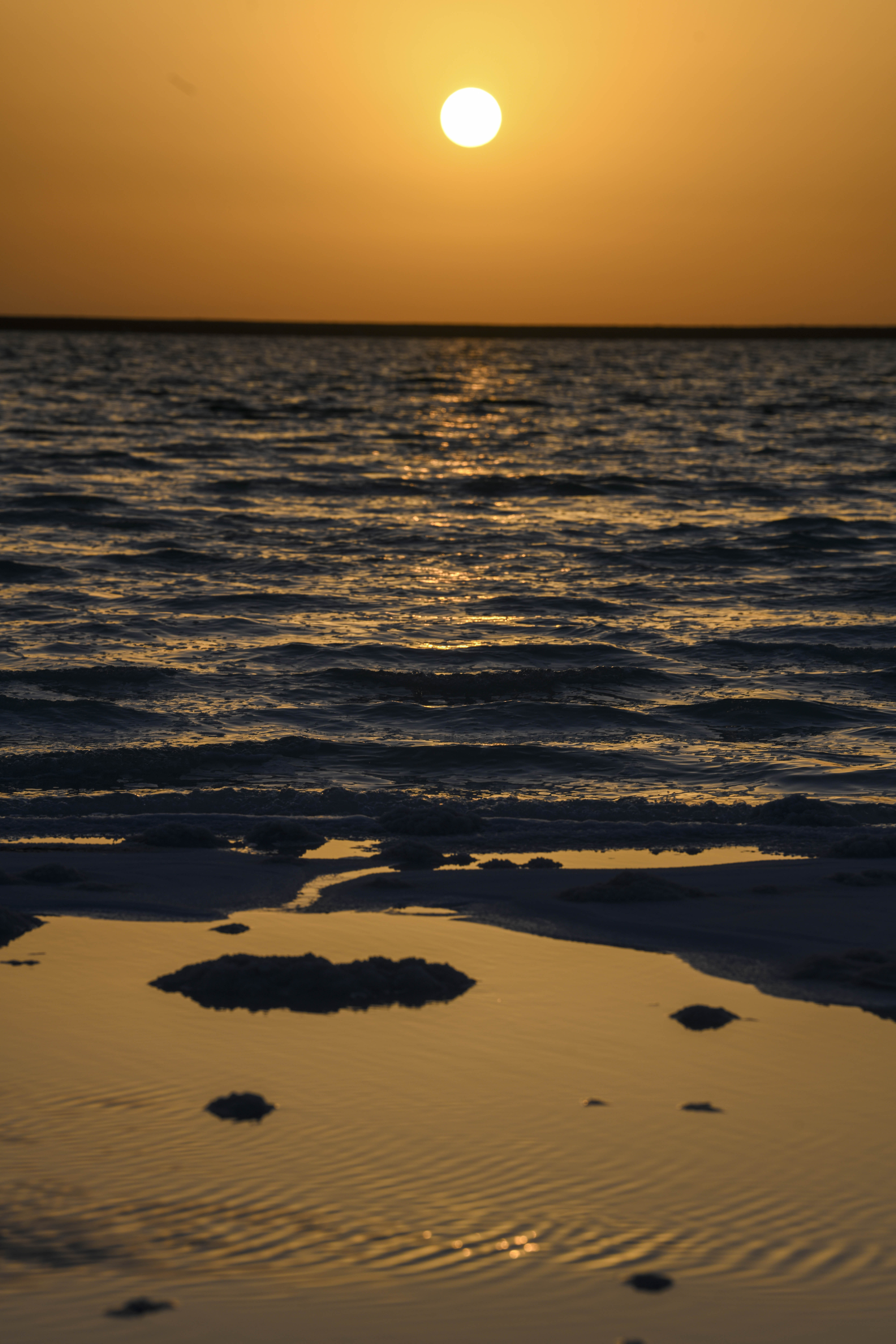 Sunset at the salt pan at Lop Nur in Ruoqiang county, northwest China's Xinjiang Uygur Autonomous Region. (Xinhua/Zhao Ge)