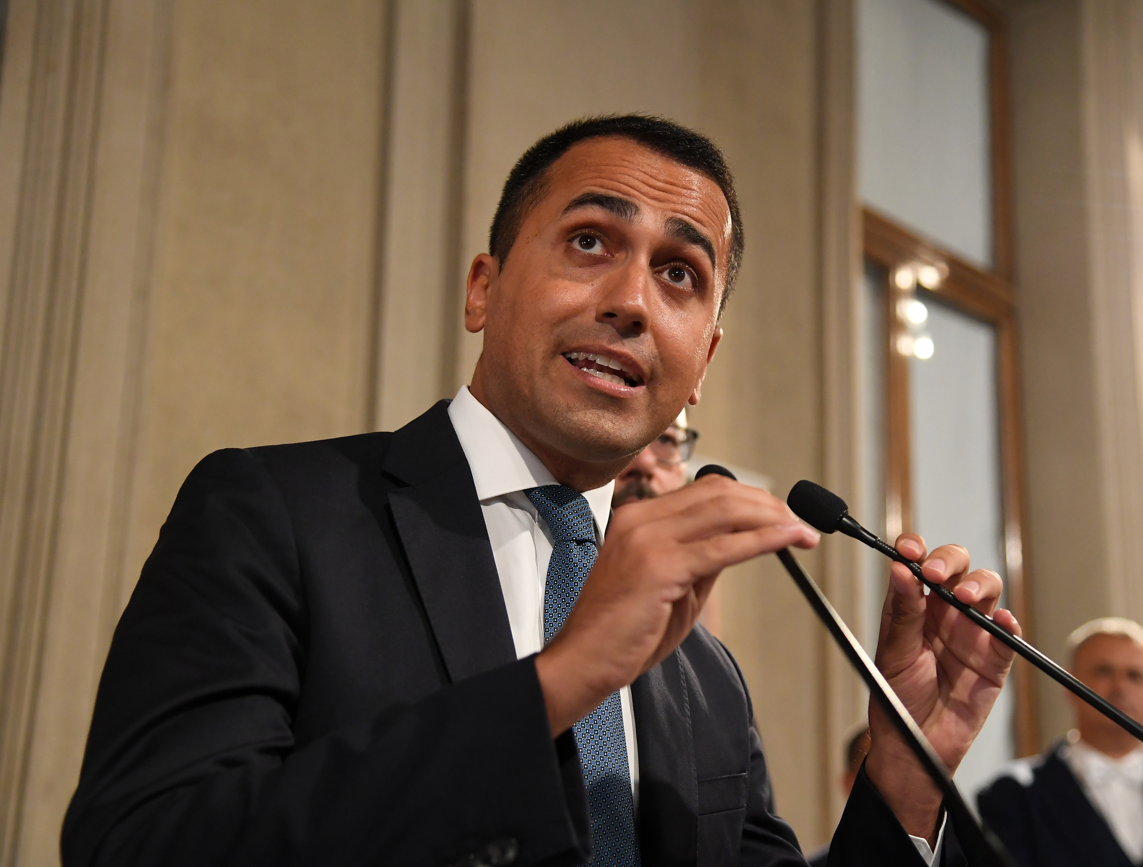 Italy's Five Star Movement leader Luigi Di Maio speaks at the Palazzo del Quirinale in Rome, Italy, on Aug. 28, 2019. (Photo by Alberto Lingria/Xinhua)