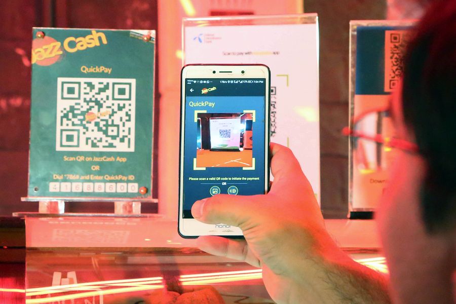 A Pakistani man pays his restaurant bill via Quick Response Code (QR code) in Islamabad, capital of Pakistan, on Aug. 21, 2019. (Xinhua/Ahmad Kamal)