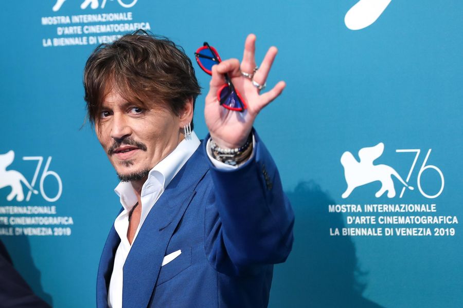 Actor Johnny Depp attends a photocall for the film "Waiting for the Barbarians" at the 76th Venice Film Festival in Venice, Italy, Sept. 6, 2019. (Xinhua/Zhang Cheng)