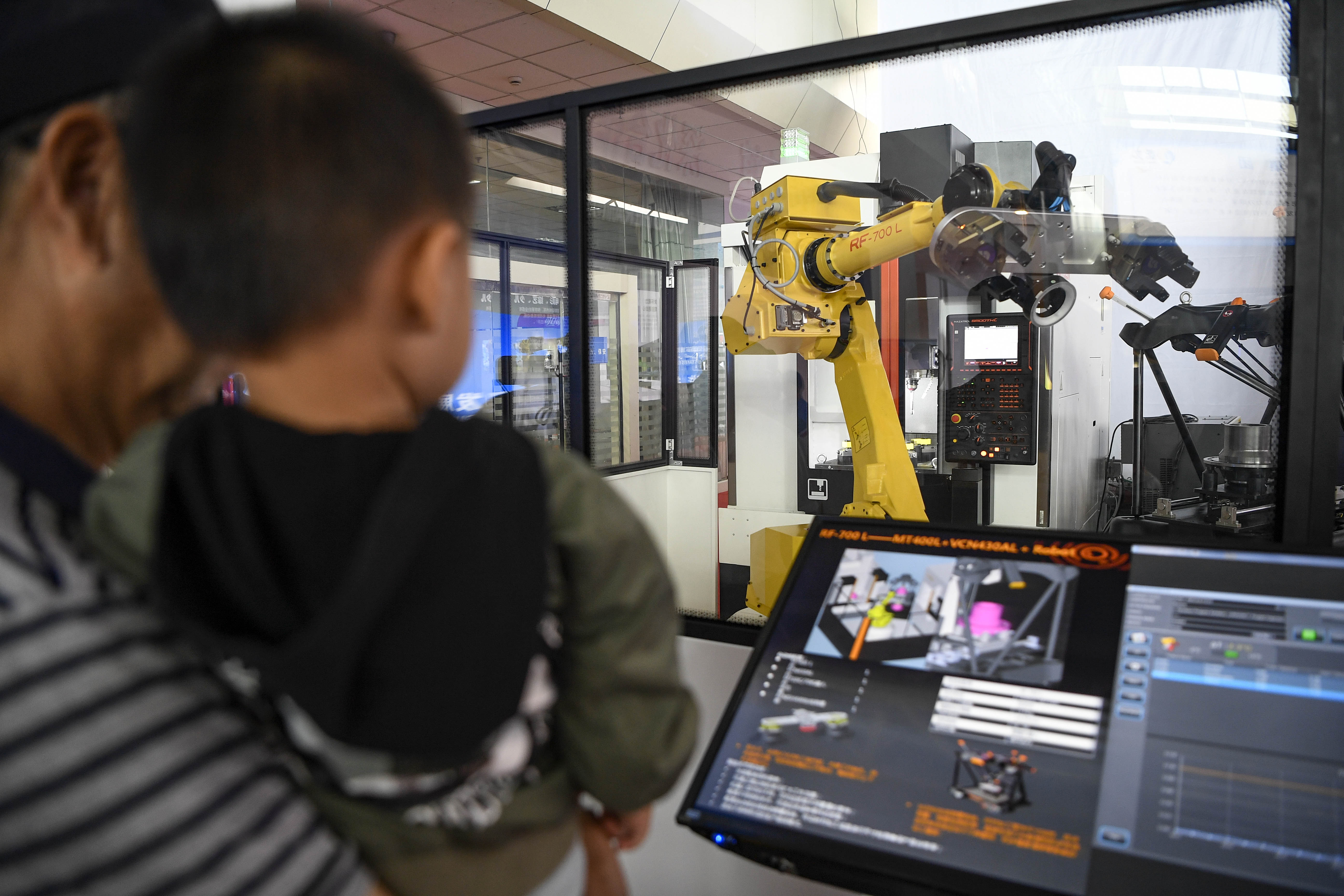 People visit an exhibition of high technologies and equipment at the Expo, Sept. 7, 2019. (Xinhua/Feng Kaihua)