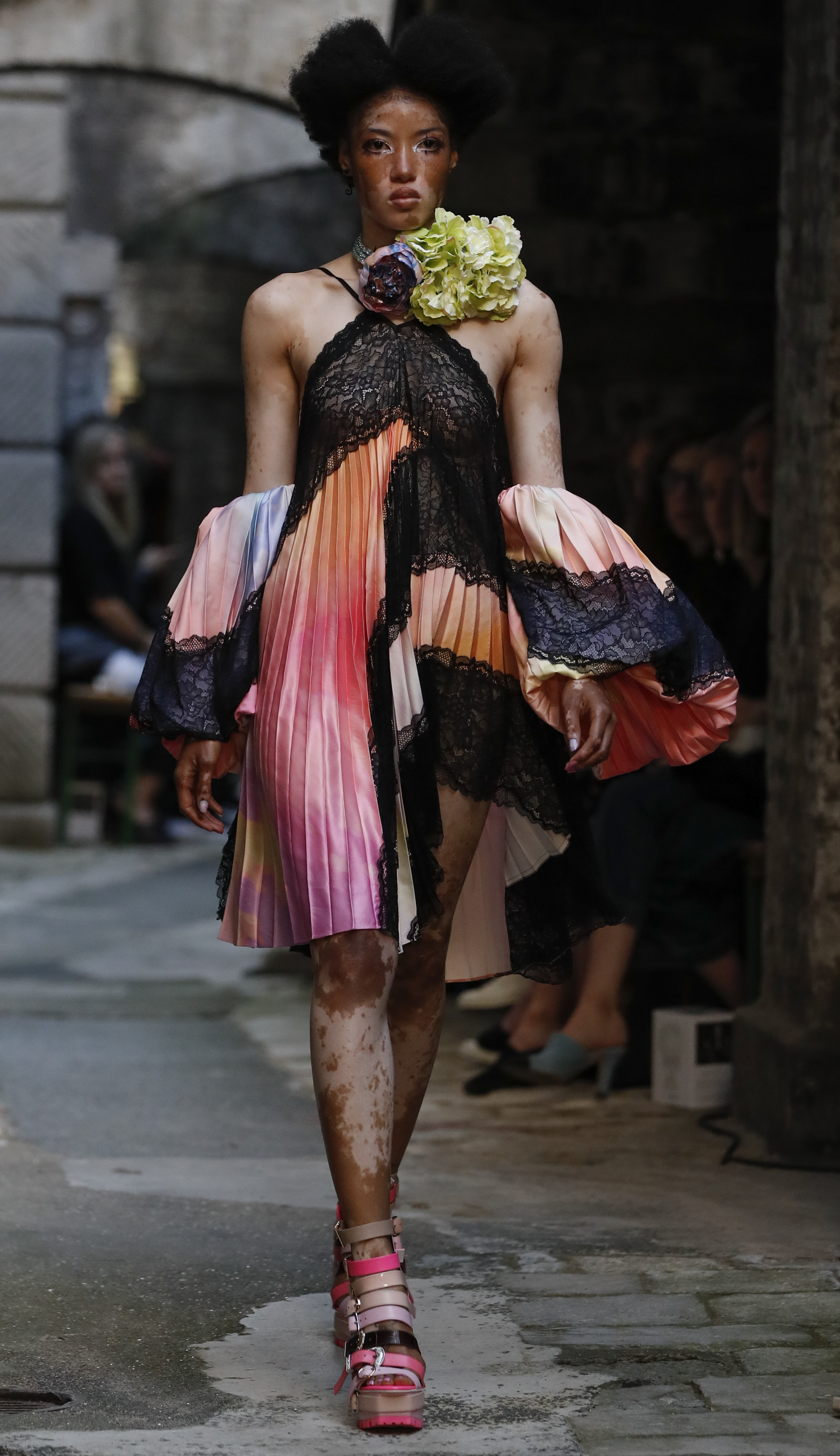 A model presents a creation of Fyodor Golan at Somerset House during the London Fashion Week in London, Britain, Sept. 14, 2019. (Xinhua/Han Yan)