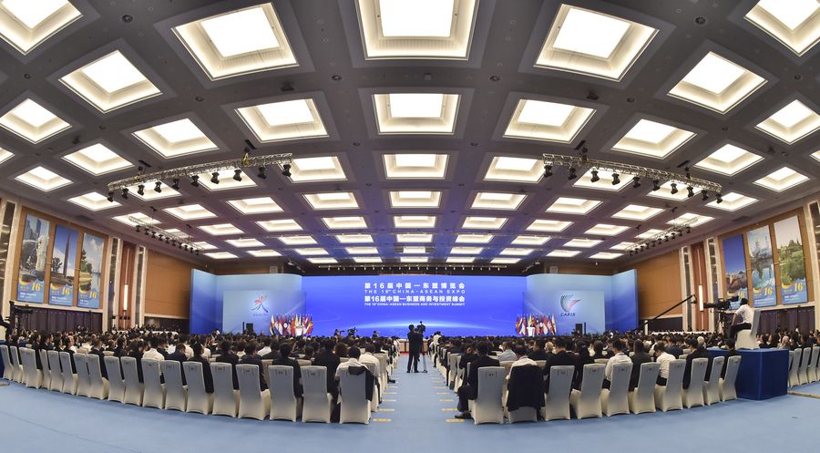 The opening ceremony of the 16th China-ASEAN Expo and the China-ASEAN Business and Investment Summit is held at Nanning International Convention and Exhibition Center in Nanning, south China's Guangxi Zhuang Autonomous Region, Sept. 21, 2019. (Xinhua/Cao Yiming)