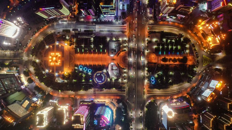 The night view of Wuxiang Square in Nanning, Sept. 20, 2019. (Xinhua/Zhang Ailin)
