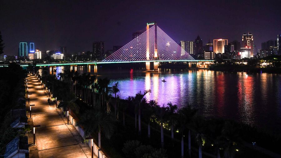The night view of Baisha Bridge in Nanning, Sept. 20, 2019. (Xinhua/Zhang Ailin)■