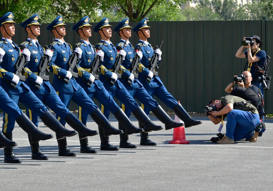 BEIJING, Sept. 26, 2019 (Xinhua) -- A total of 47 journalists from home and abroad on Wednesday visited a training site of the military parade for the upcoming National Day celebrations.