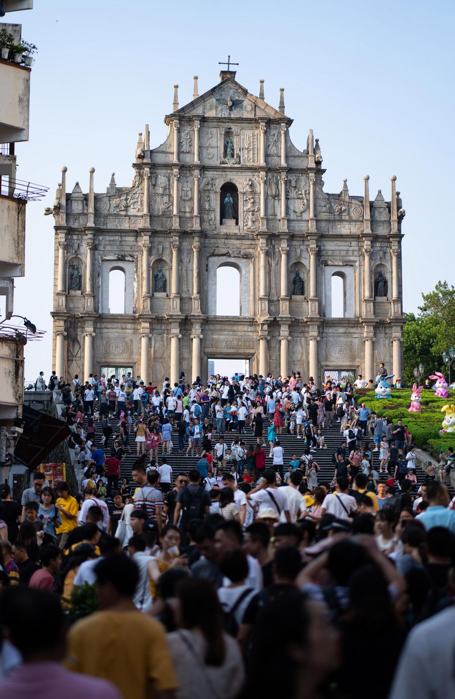 People visit the Ruins of St. Paul's in Macao Special Administrative Region, south China, Oct. 2, 2019. (Xinhua/Cheong Kam Ka)■