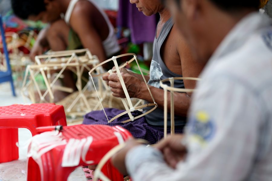 Using bamboo as the main raw material, Myanmar's traditional handmade lanterns come in different types and designs. Basically, bamboos are trimmed and molded into selected shapes.