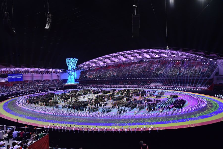 WUHAN, Oct. 19, 2019 (Xinhua) -- The 7th Military World Games opened on Friday evening in Wuhan, capital city of central China's Hubei province. The quadrennial military gala, held in China for the first time, is set to usher in a new era for the event with a couple of record-breaking endeavors.