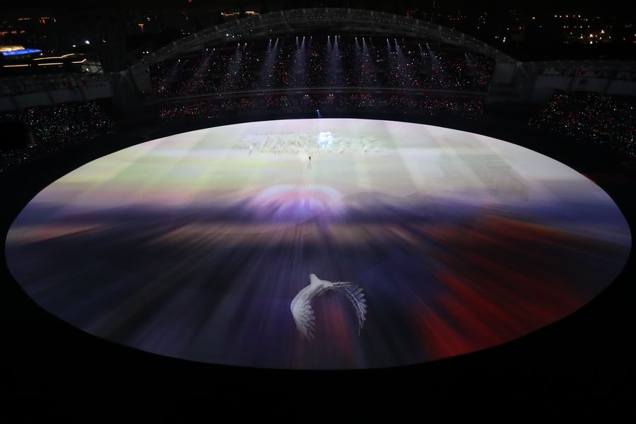 The cauldron is lit during the opening ceremony of the 7th International Military Sports Council (CISM) Military World Games in Wuhan, capital of central China's Hubei Province, Oct. 18, 2019.(Xinhua/Jiang Kehong)
