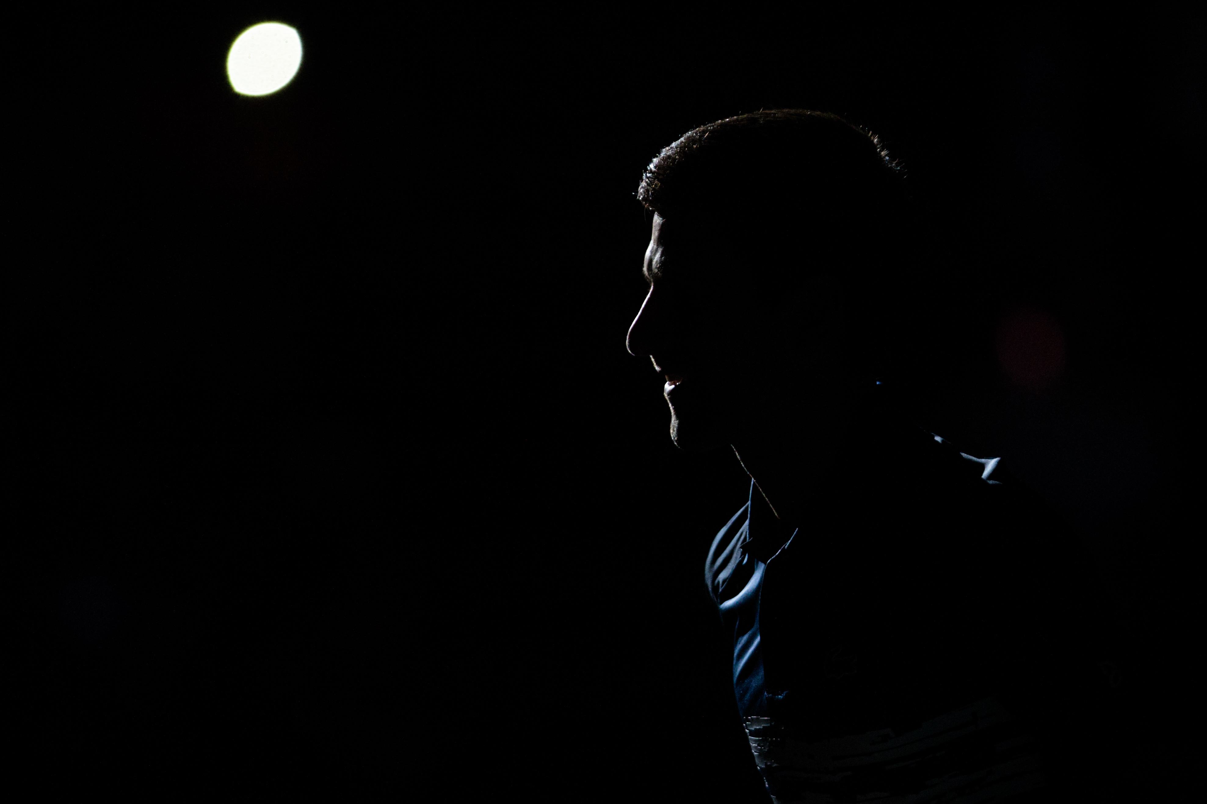 Pizzi (Top) of Benfica jumps over Portimonense's goalkeeper Ricardo Ferreira during their Portuguese League football match at the Luz stadium in Lisbon, Portugal, on Oct. 30, 2019. (Photo by Pedro Fiuza/Xinhua)