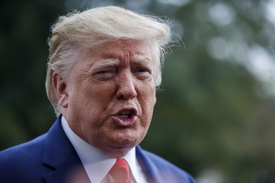 U.S. President Donald Trump speaks to reporters before leaving the White House in Washington D.C., the United States, on Oct. 25, 2019. (Photo by Ting Shen/Xinhua)