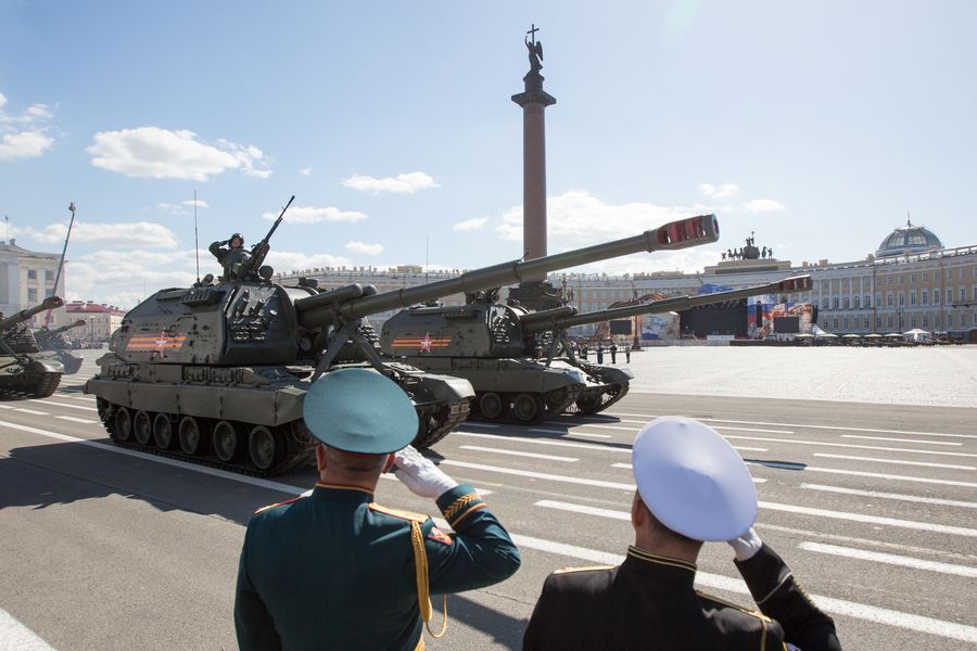 Russian tanks are seen during a Victory Day parade in St. Petersburg, Russia, May 9, 2019. (Xinhua/Irina Motina)