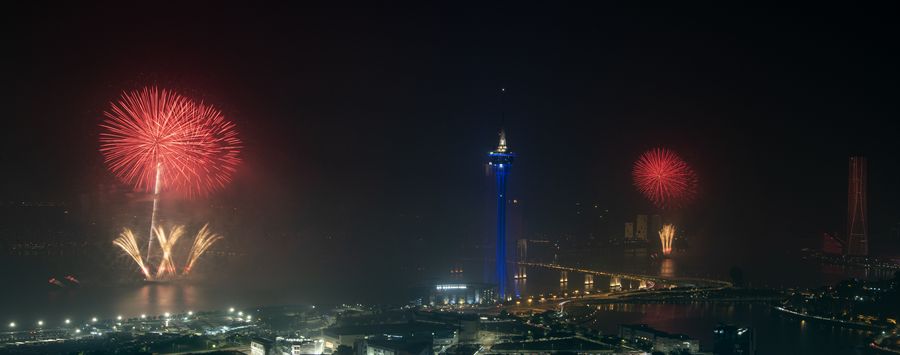Fireworks explode over the sky in south China's Macao, Dec. 22, 2019. (Xinhua/Cheong Kam Ka)