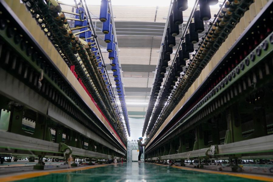 A worker operates at a cashmere yarn production line at a factory of cashmere products in Nangong County of Xingtai, north China's Hebei Province, Dec. 24, 2019. (Xinhua/Mu Yu)