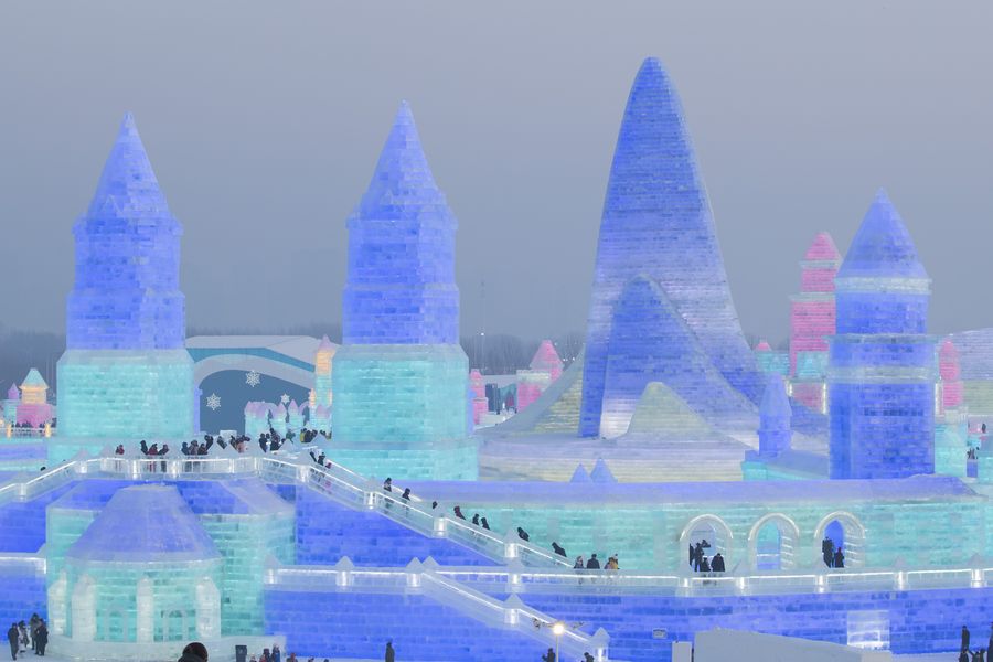 People visit the 36th Harbin Ice and Snow Festival at Harbin Ice-Snow World in Harbin, capital of China's northernmost Heilongjiang Province, Jan. 5, 2020.(Xinhua/Zhang Tao)