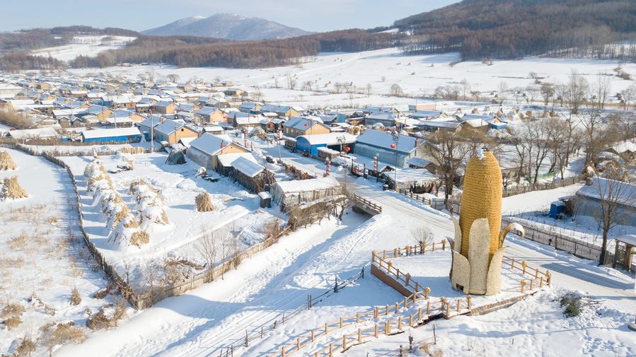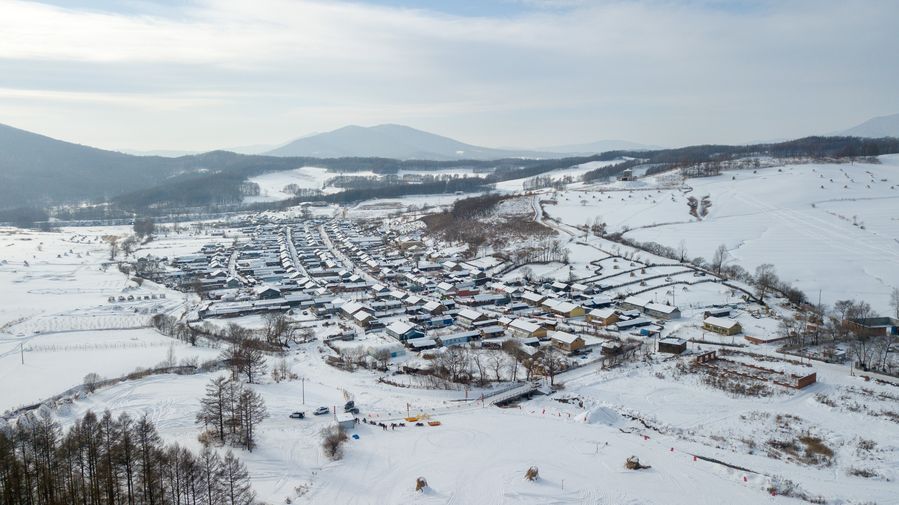 Aerial photo shows the snow scenery in Ma'anling Village of Shulan City, northeast China's Jilin Province, Jan. 21, 2020. (Xinhua/Zhang Nan)■