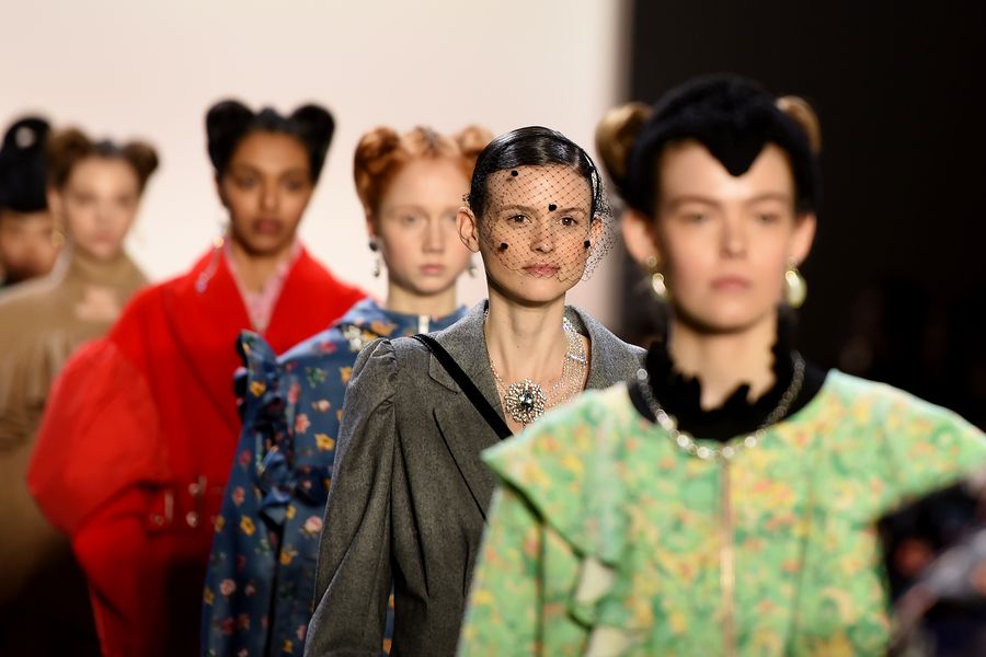Models present creations of SUN=SEN during the Fashion Hong Kong runway show at New York Fashion Week Fall/Winter 2020 in New York, the United States, on Feb. 6, 2020. (Xinhua/Han Fang)