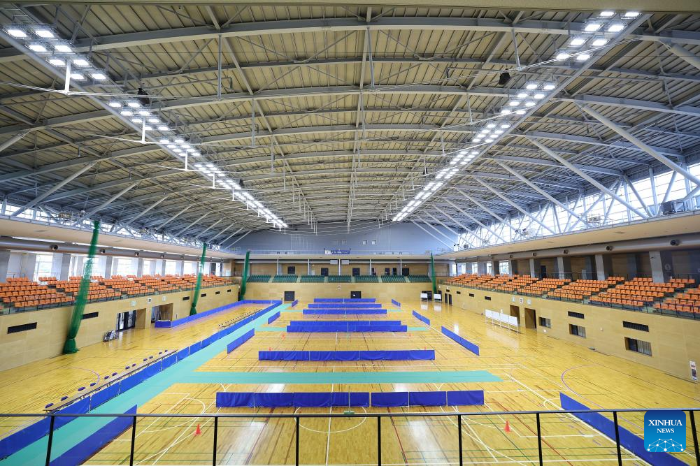 Photo taken on Oct. 10, 2025 shows the general view of Ichinomiya City Municipal Gymnasium, which will host badminton event during the 20th Asian Games Aichi-Nagoya 2026, in Ichinomiya, Japan. (Xinhua/Cao Can)