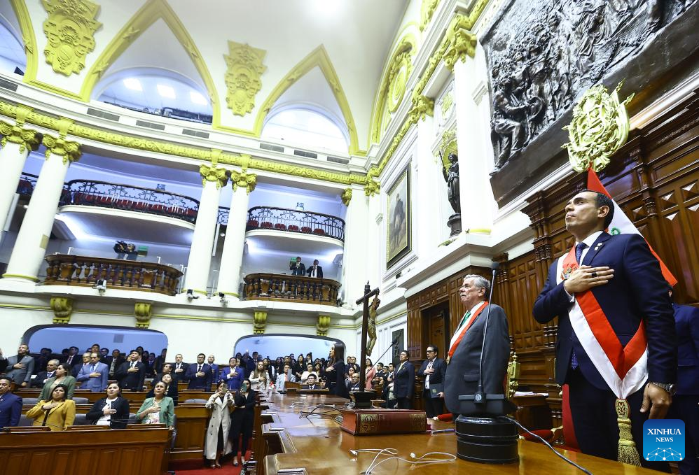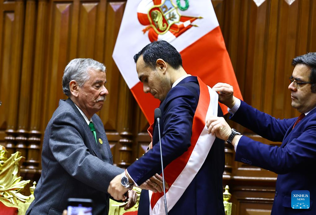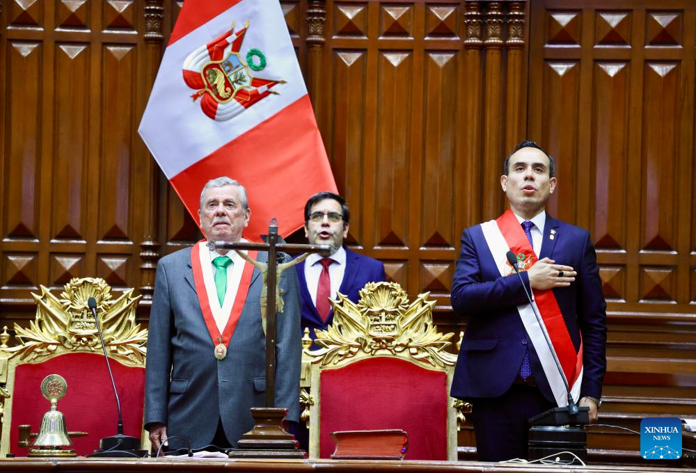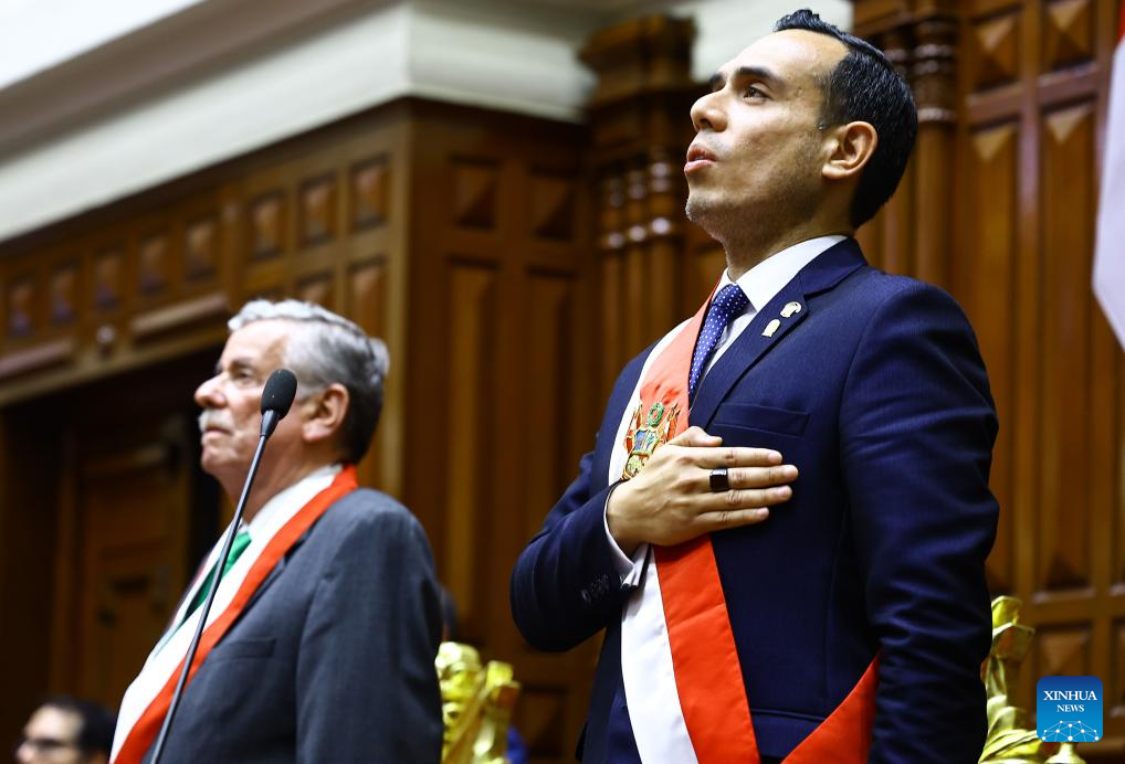 LIMA, Oct. 10 (Xinhua) -- Peru's Congress leader Jose Jeri was sworn in as the country's president early on Friday, shortly after the Congress removed former President Dina Boluarte from office.