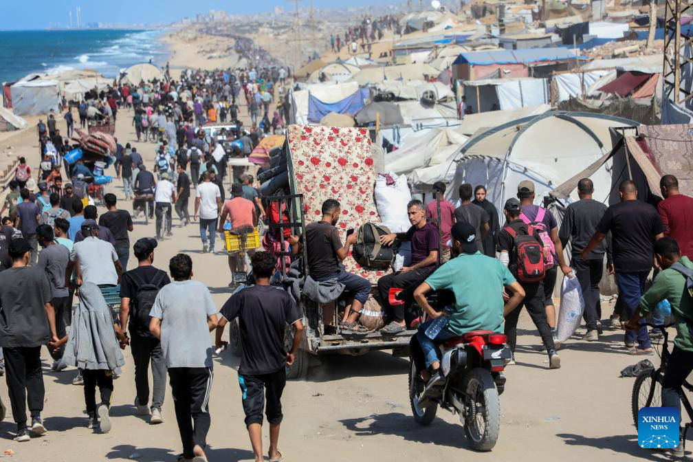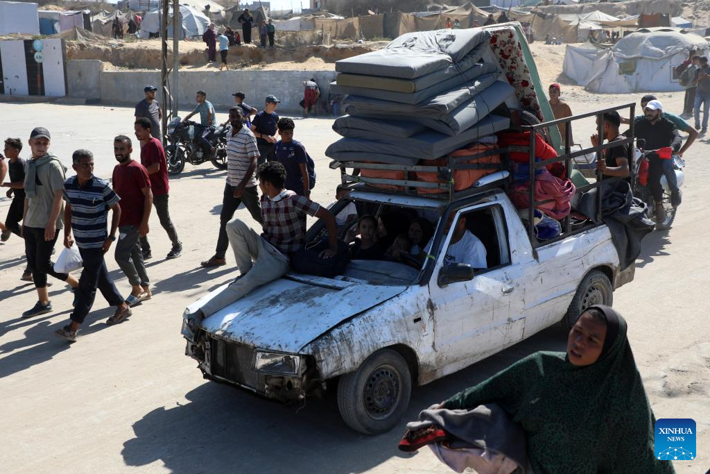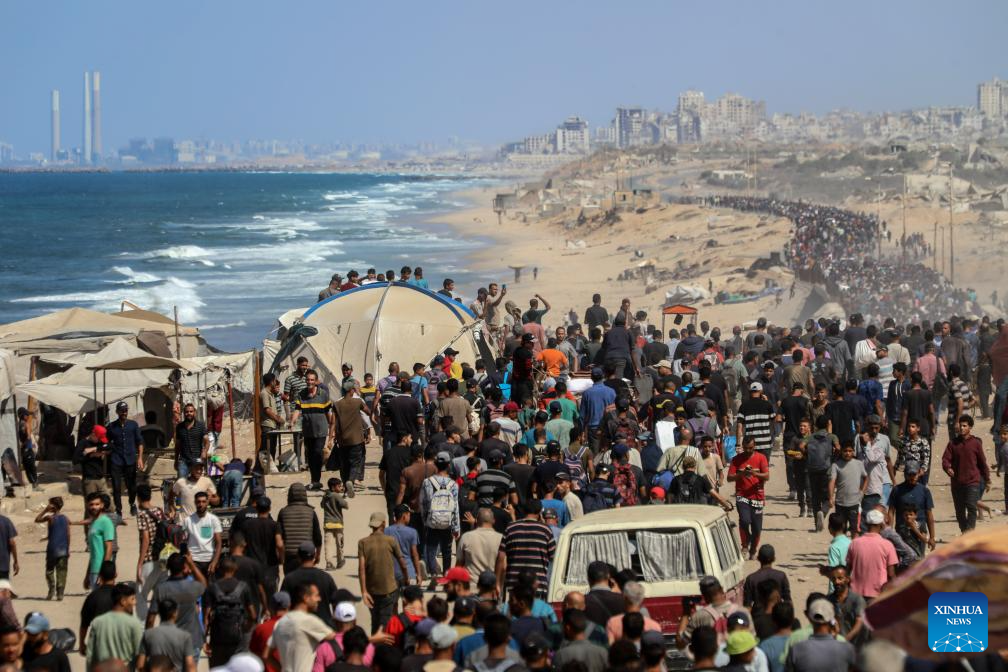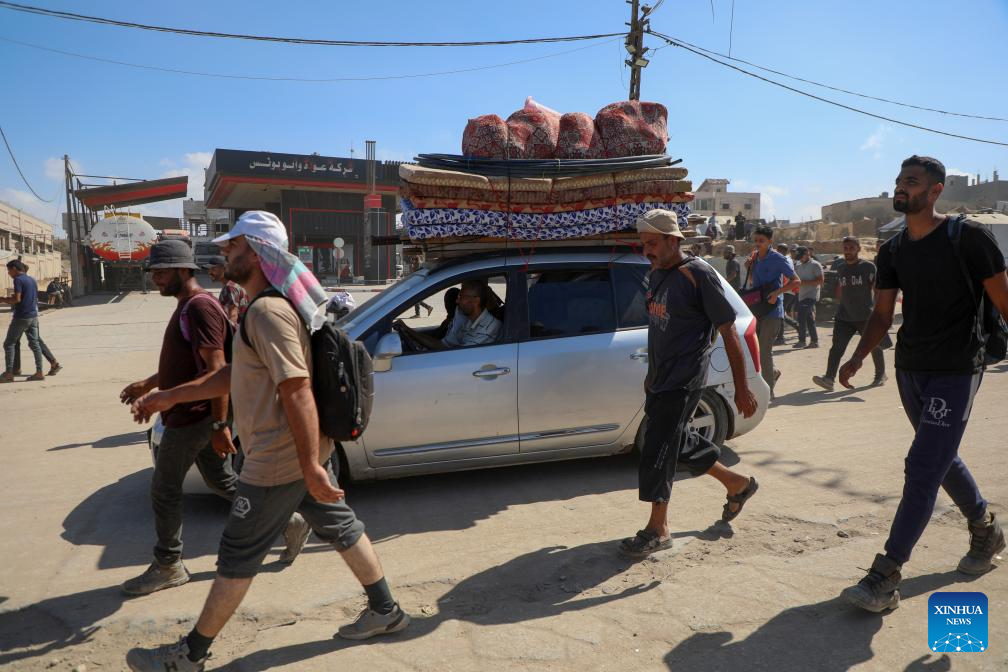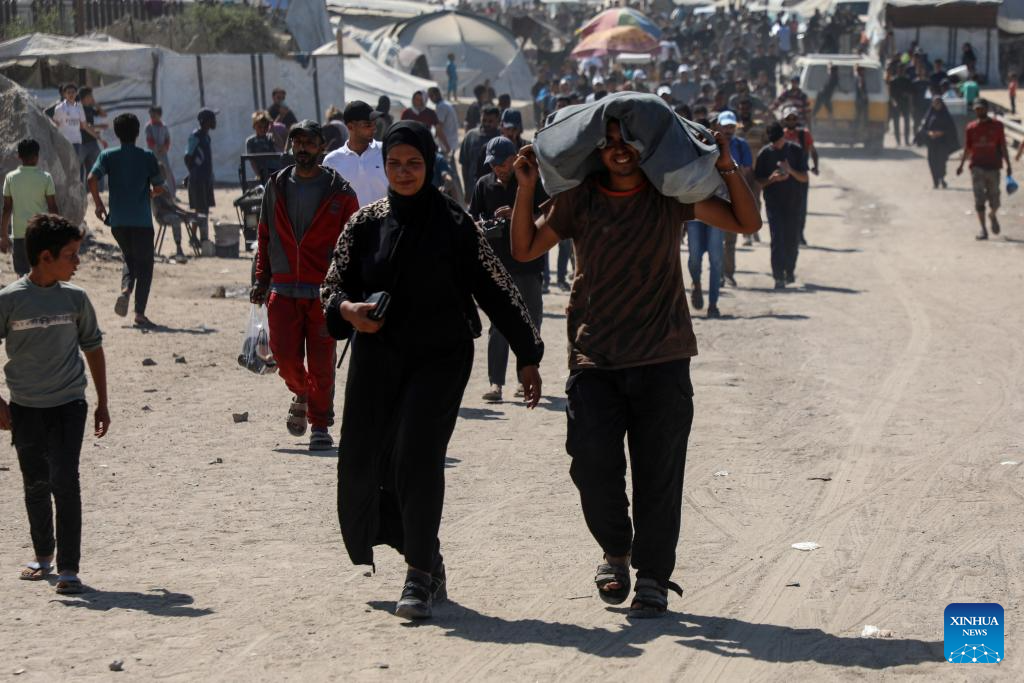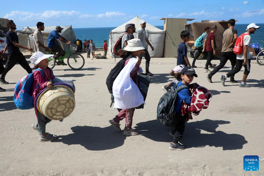 GAZA/JERUSALEM, Oct. 10 (Xinhua) -- Displaced Palestinians have begun returning from the southern part of the Gaza Strip to the north after the Israeli army announced that civilians are permitted to move through the coastal Rashid Road and Salah al-Din Road, local sources said on Friday.