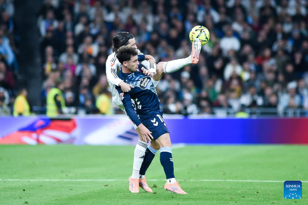 Real Madrid's Federico Valverde (C) competes during a La Liga football match between Real Madrid and Celta Vigo at Santiago Bernabeu stadium in Madrid, Spain, on Dec. 7, 2025. (Photo by Gustavo Valiente/Xinhua)