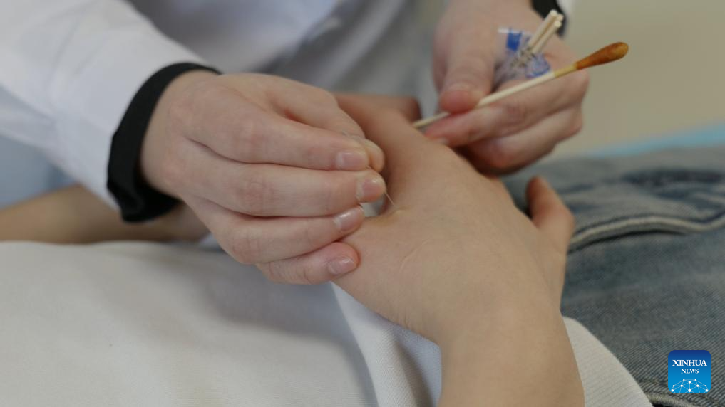 LANZHOU, Jan. 17 (Xinhua) -- At the clinic of the Affiliated Hospital of Gansu University of Chinese Medicine, Sevira Putri Purnama Lumarso, a 22-year-old Indonesian, carefully locates acupuncture points and inserts needles for a patient.
