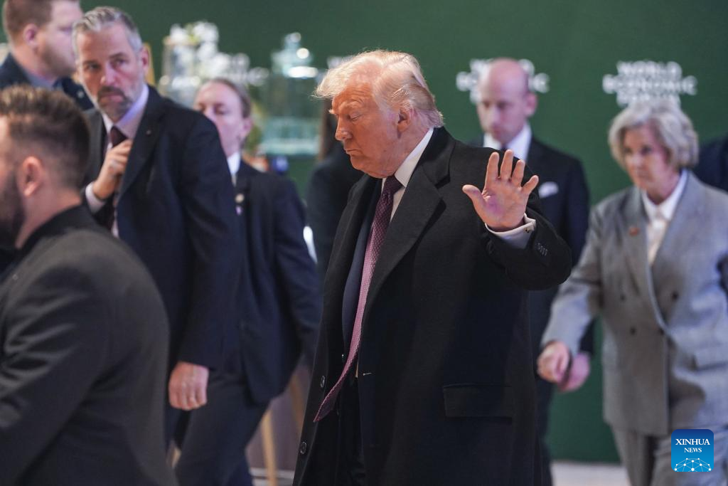 U.S. President Donald Trump is pictured after his meeting with Ukrainian President Volodymyr Zelensky in Davos, Switzerland, Jan. 22, 2026. U.S. President Donald Trump said on Thursday in Davos that his meeting with Ukrainian President Volodymyr Zelensky was "very good," adding that "it's an ongoing process." (Xinhua/Peng Ziyang)