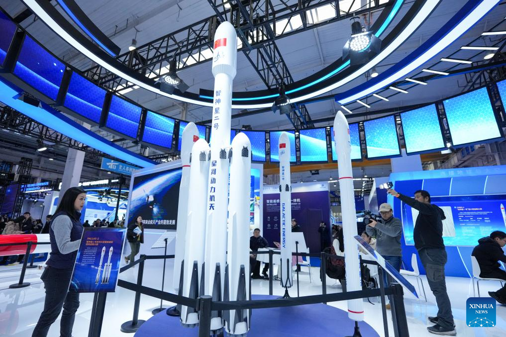 People visit the booth of Interstellar Glory at the 2026 Beijing International Commercial Space Exhibition in Beijing, capital of China, Jan. 23, 2026. The exhibition kicked off here on Friday. (Xinhua/Ju Huanzong)