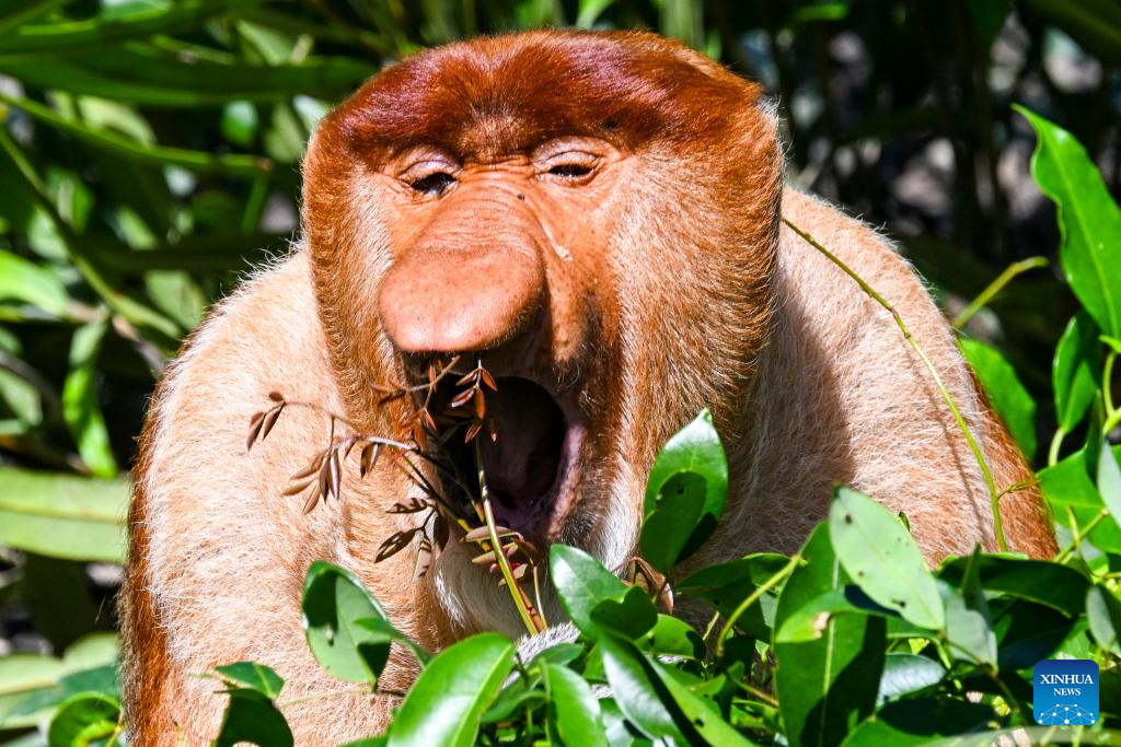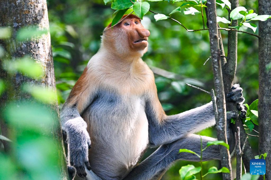 This photo taken on Jan. 20, 2026 shows a proboscis monkey (Nasalis larvatus) in Sandakan, Malaysia. (Xinhua/Cheng Yiheng)