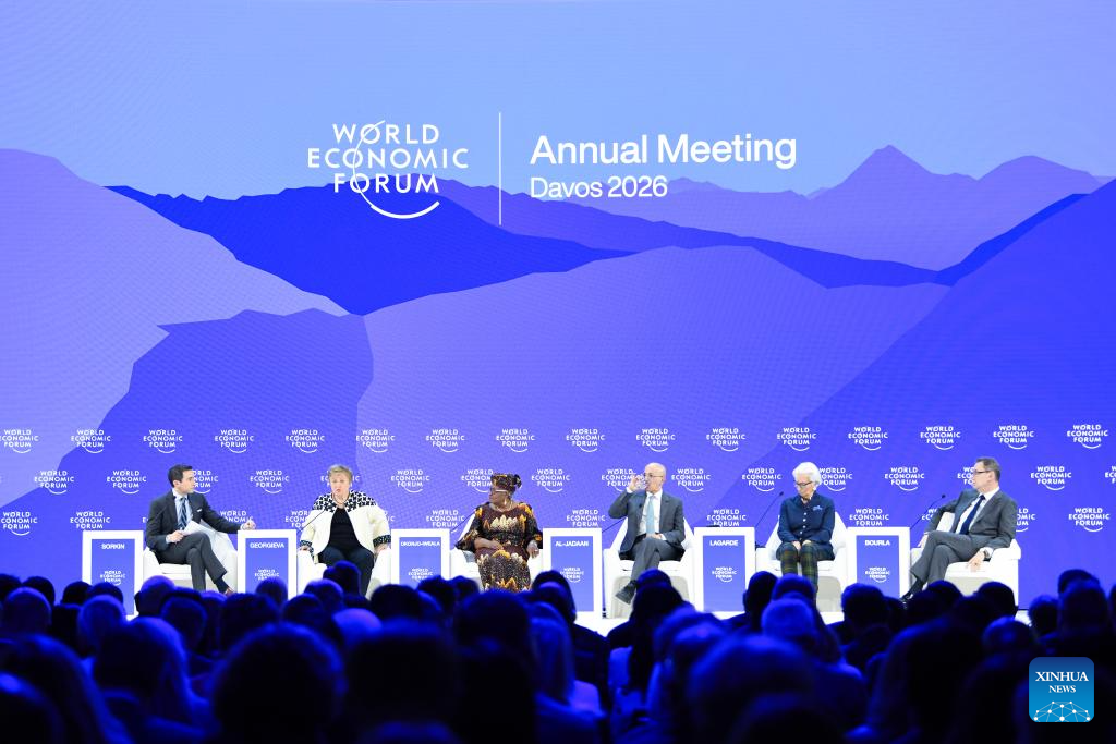 World Trade Organization (WTO) Director-General Ngozi Okonjo-Iweala speaks at the World Economic Forum (WEF) Annual Meeting 2026 in Davos, Switzerland, Jan. 23, 2026. The WEF concluded its 2026 annual meeting here on Friday. (Xinhua/Lian Yi)