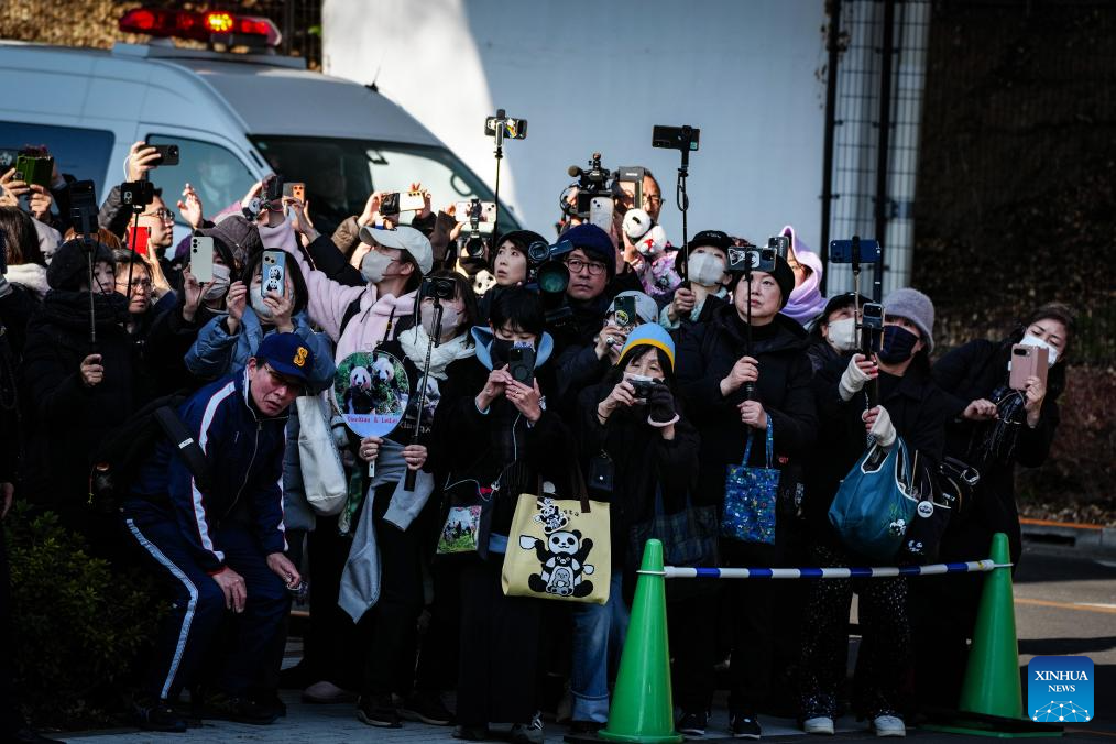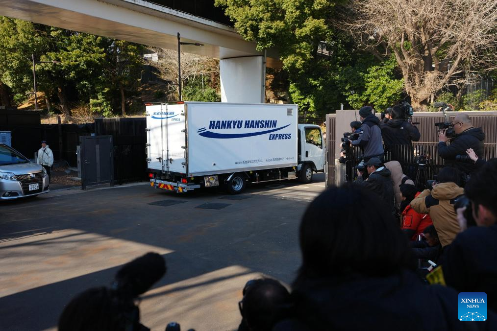 TOKYO, Jan. 27 (Xinhua) -- The last remaining two giant pandas in Japan on Tuesday left Tokyo's Ueno zoo for their return to China, marking the first time that there will be no pandas in Japan in around half a century.