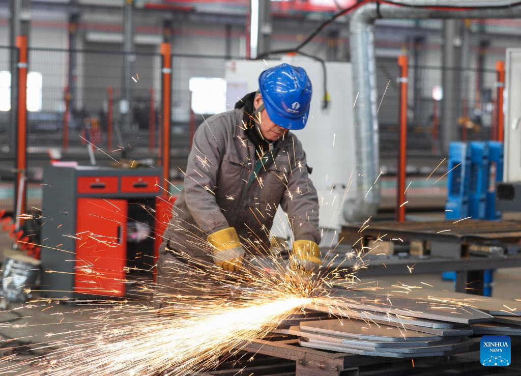 A worker is seen at a factory at the Haigang economic zone in Tangshan, north China's Hebei Province, Jan. 27, 2026. Profits of China's major industrial firms returned to growth in 2025, snapping a three-year streak of declines, with emerging sectors such as equipment manufacturing and high-tech manufacturing serving as major growth drivers.