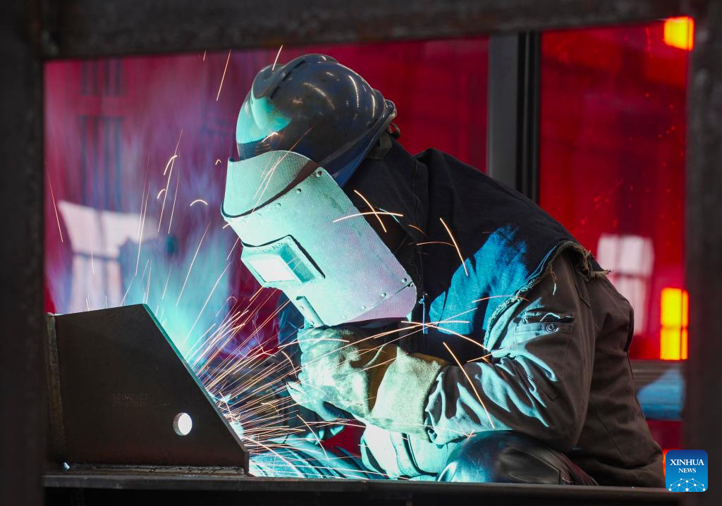 A worker is seen at a factory at the Haigang economic zone in Tangshan, north China's Hebei Province, Jan. 27, 2026. (Photo by Liu Mancang/Xinhua)