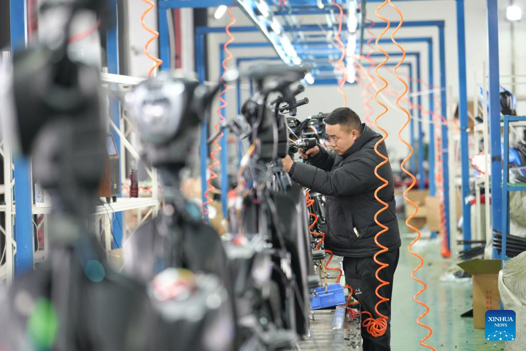 A worker works on a production line at a motorcycle company in Tongren City, southwest China's Guizhou Province, Jan. 27, 2026. Profits of China's major industrial firms returned to growth in 2025, snapping a three-year streak of declines, with emerging sectors such as equipment manufacturing and high-tech manufacturing serving as major growth drivers.