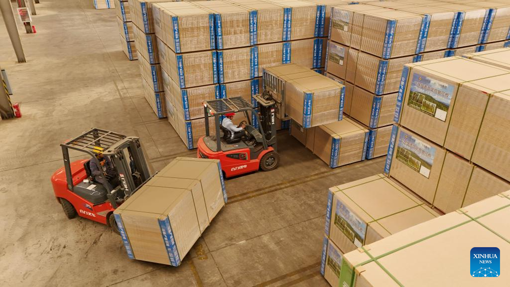 A drone photo taken on Jan. 27, 2026 shows workers piling products at a factory in Simao District, Pu'er City, southwest China's Yunnan Province. Profits of China's major industrial firms returned to growth in 2025, snapping a three-year streak of declines, with emerging sectors such as equipment manufacturing and high-tech manufacturing serving as major growth drivers.