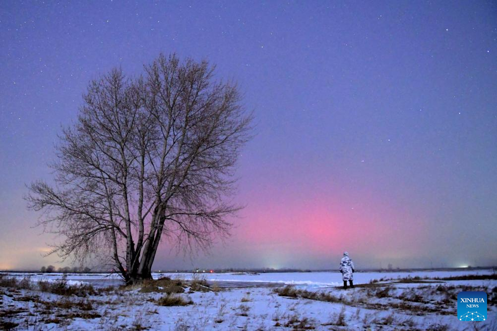 This photo taken on Jan. 20, 2026 shows the aurora observed from Qiqihar City, northeast China's Heilongjiang Province. China's northernmost Heilongjiang Province has entered the golden period for winter starry sky observation. With auroras occasionally making an appearance, the brilliant starry sky and the icy landscape together unfold a serene and breathtaking picture. (Photo by Wang Yonggang/Xinhua)