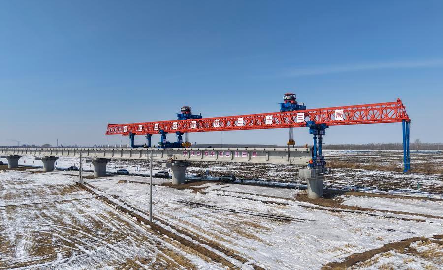 JIAMUSI, March 20 (Xinhua) -- The Tongjiang super major bridge, part of the capacity expansion and renovation project for the Jiamusi-Tongjiang Railway, resumed beam erection on Friday.