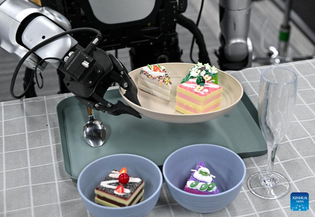 A robot waves to the audience at the media center of the 2026 Zhongguancun Forum (ZGC Forum) in Beijing, capital of China, March 24, 2026. Themed "Full Integration Between Technological and Industrial Innovation," this year's ZGC Forum is held in Beijing from March 25 to 29. More than 1,000 guests from over 100 countries and regions are expected to participate in the forum, which features more than 100 events. (Xinhua/Zhang Chenlin)