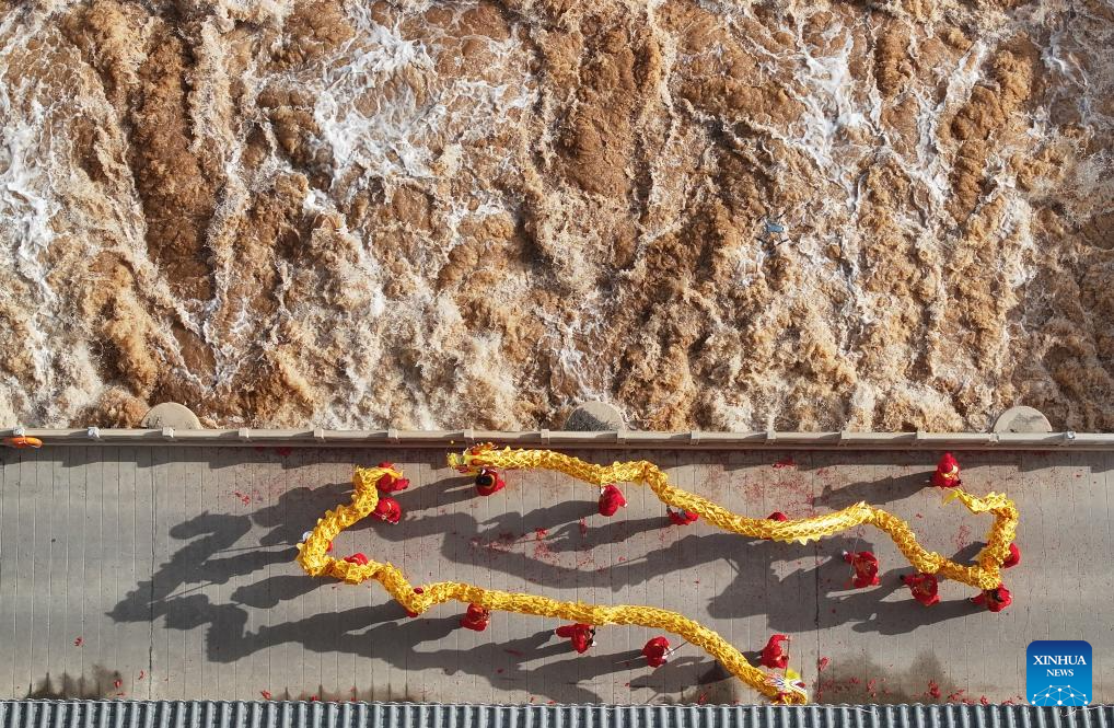 An aerial drone photo taken on March 24, 2026 shows an opened sluice gate diverting water from the Yellow River for irrigation in Qingtongxia, northwest China's Ningxia Hui Autonomous Region. (Xinhua/Wang Peng)