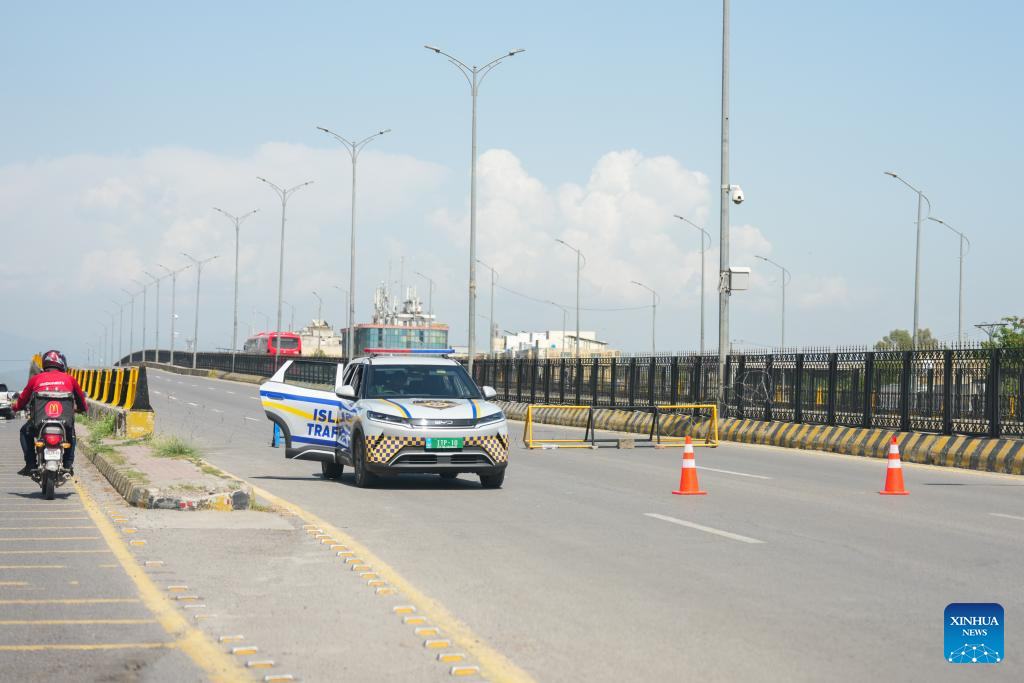 A police car is seen at a checkpoint in Islamabad, Pakistan, April 19, 2026. Pakistan has placed its capital Islamabad and the neighboring garrison city of Rawalpindi on high security alert ahead of the expected second round of U.S.-Iran talks. (Xinhua/Chen Zeguo)