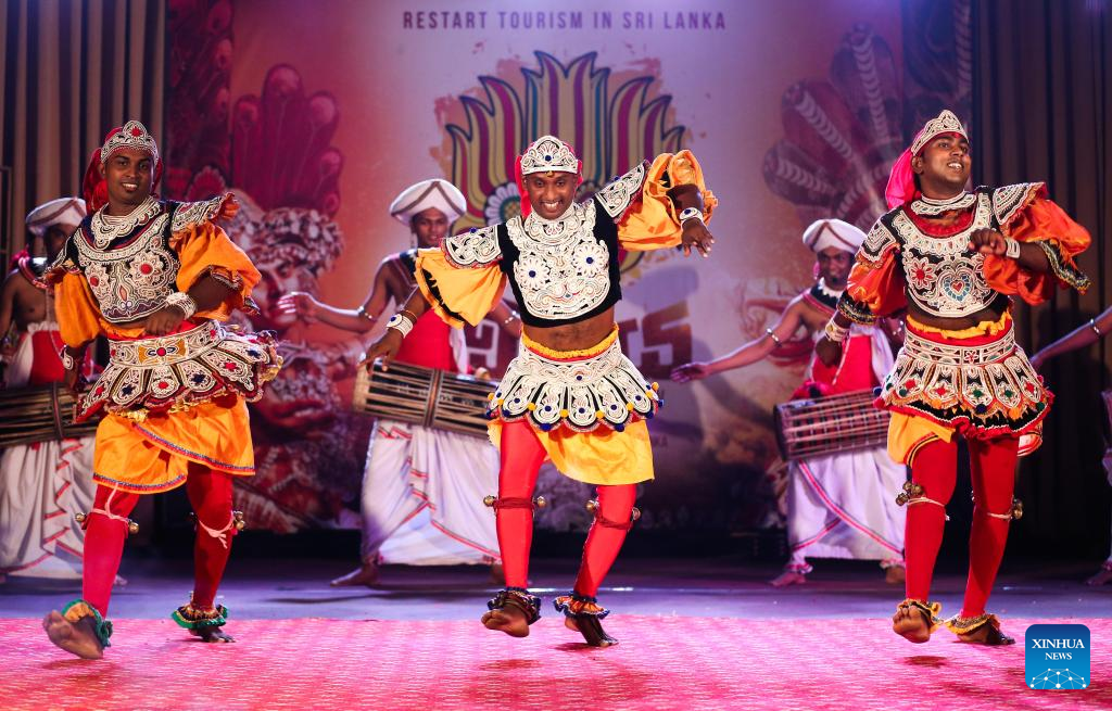 Dancers perform during a cultural dance show to promote tourism in Colombo, Sri Lanka, on March 25, 2022. (Photo by Ajith Perera/Xinhua)