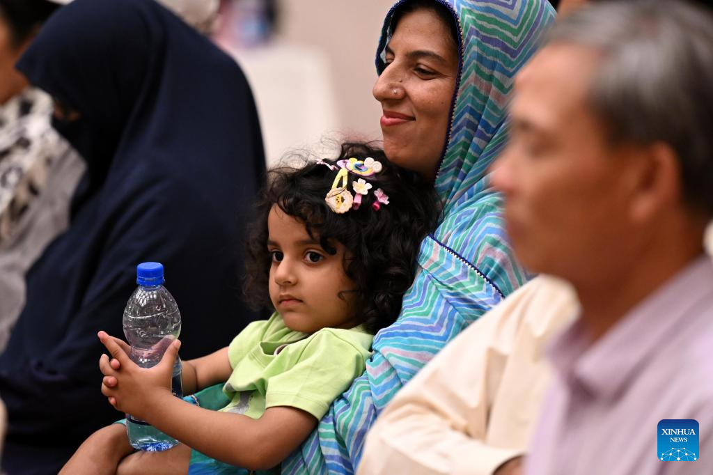 A child is seen with her mother during an event celebrating the Mid-Autumn Festival at the Chinese Embassy in Pakistan on Oct. 7, 2025. Pakistani children recovering from congenital heart defects and their parents were invited to the Chinese Embassy in Pakistan to celebrate the Mid-Autumn Festival.(Xinhua/Ahmad Kamal)
