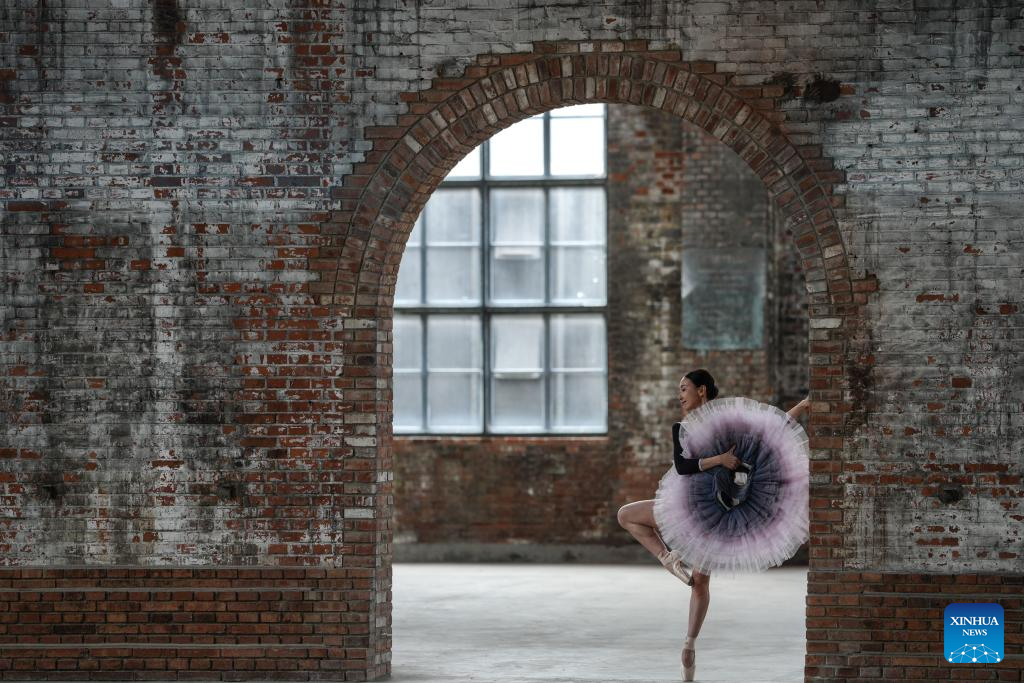 A woman poses for photos at a cultural and creative site, which is transformed from an abandoned factory, in Shenyang, capital of northeast China's Liaoning Province, Oct. 6, 2025. Many industrial heritages in Shenyang of northeast China's Liaoning Province have been transformed into public leisure spaces, creative industry parks, and distinctive neighborhoods, offering citizens and tourists unique experiences during this year's National Day and Mid-Autumn Festival holiday. (Xinhua/Pan Yulong)