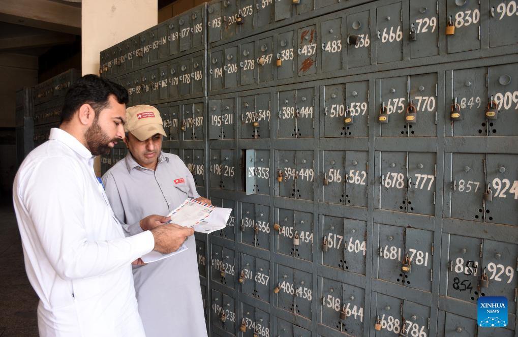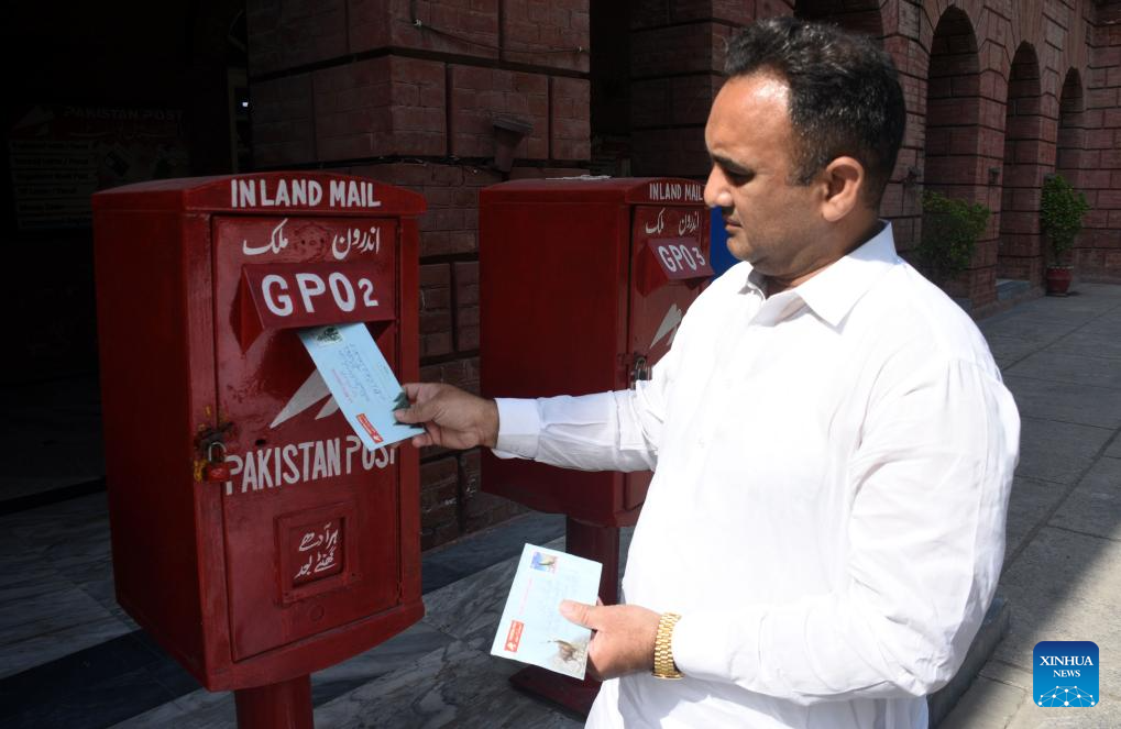 A man posts a mail on World Post Day in Lahore, Pakistan on Oct. 9, 2025. (Photo by Sajjad/Xinhua)