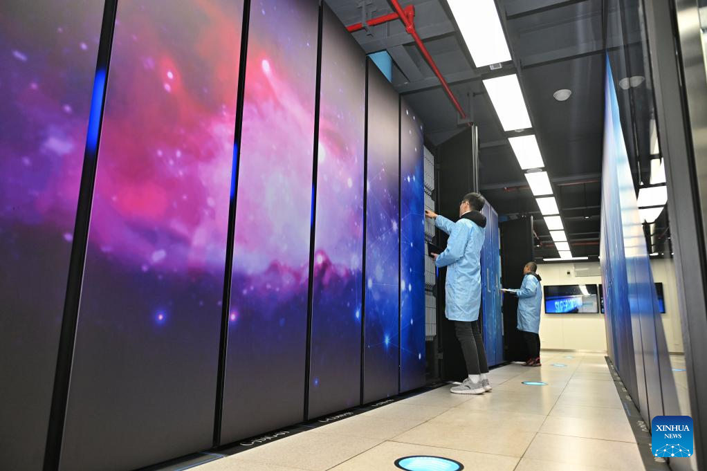 Researchers inspect devices at the National Supercomputing Center in Tianfu New Area, southwest China's Sichuan Province, Jan. 10, 2025. The combined economic output of southwest China's Sichuan Province and Chongqing Municipality has exceeded 10 trillion yuan (about 1.44 trillion U.S. dollar) in 2025, accounting for approximately 7.2 percent of the national total. (Xinhua/Liu Kun)