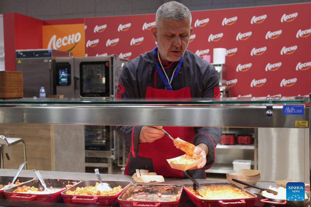 A chef prepares food in a booth at the exhibition in Sofia, Bulgaria, Jan. 27, 2026. The 23rd edition of the international exhibition SIHRE kicked off in the Inter Expo Center here on Tuesday offering products and services for restaurants, hotels, and the catering industry. (Xinhua/Yao Yulin)