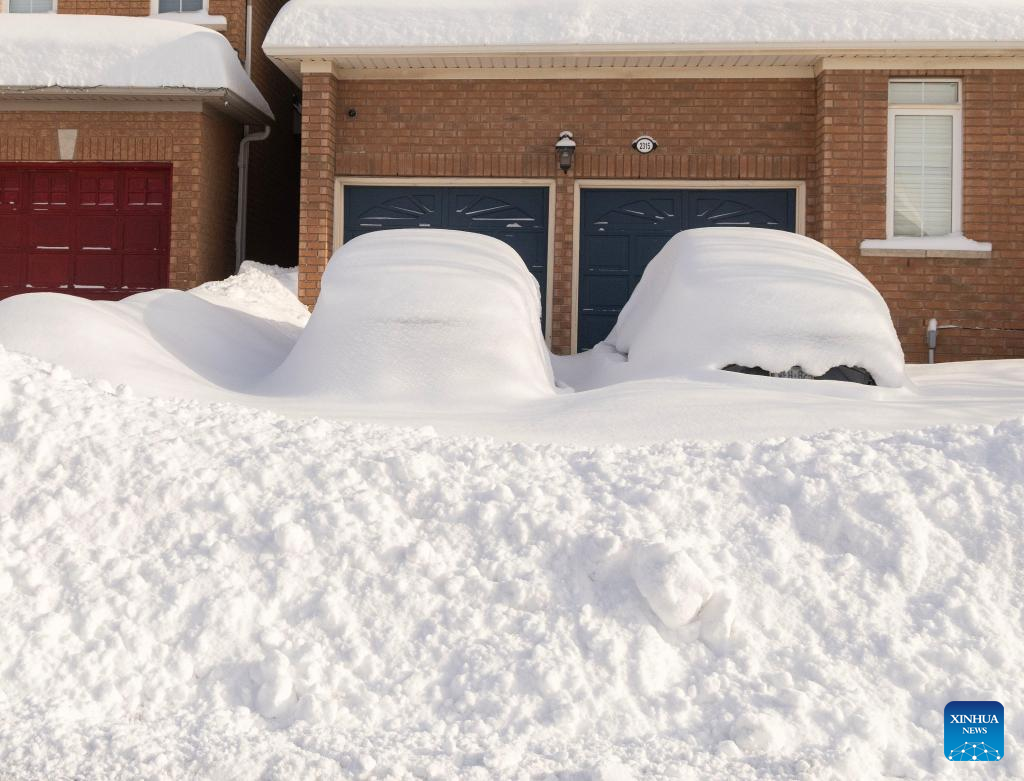Photo taken on Jan. 26, 2026 shows snow-covered vehicles in Oakville, the Greater Toronto Area, Canada. (Photo by Zou Zheng/Xinhua)