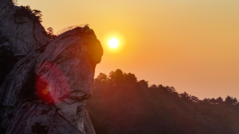 Scenery of Guifeng mountain at sunrise in China's Hubei