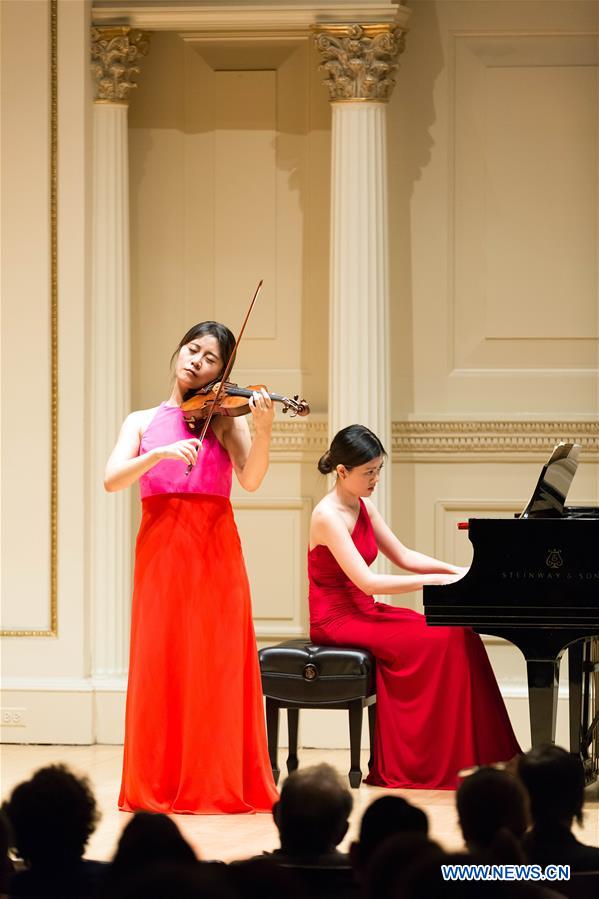 Chinese violinist Wang Jiazhi performs during her Carnegie Hall debut in New York, the United States, March 28, 2017. As a prize-winner of the Washington International Competition and China Young Artist Competition, Wang Jiazhi has appeared at music festivals around the world as soloist, recitalist and chamber musician. (Xinhua/Tang Siyu)